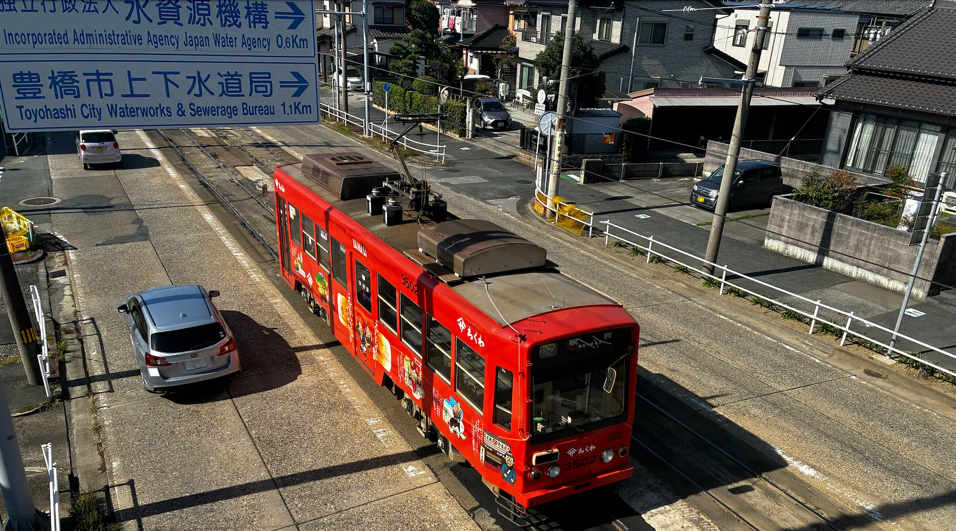 豊橋の市電は、100年前から存在する現代に残る歴史的な乗り物。刻まれたレール上にガタンゴトンと叩き込まれた歴史の深みがあります。