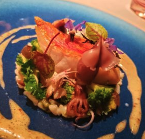ホタルイカや野菜が盛り付けてある土台には、リゾットのお皿が仕掛けられています(^^)