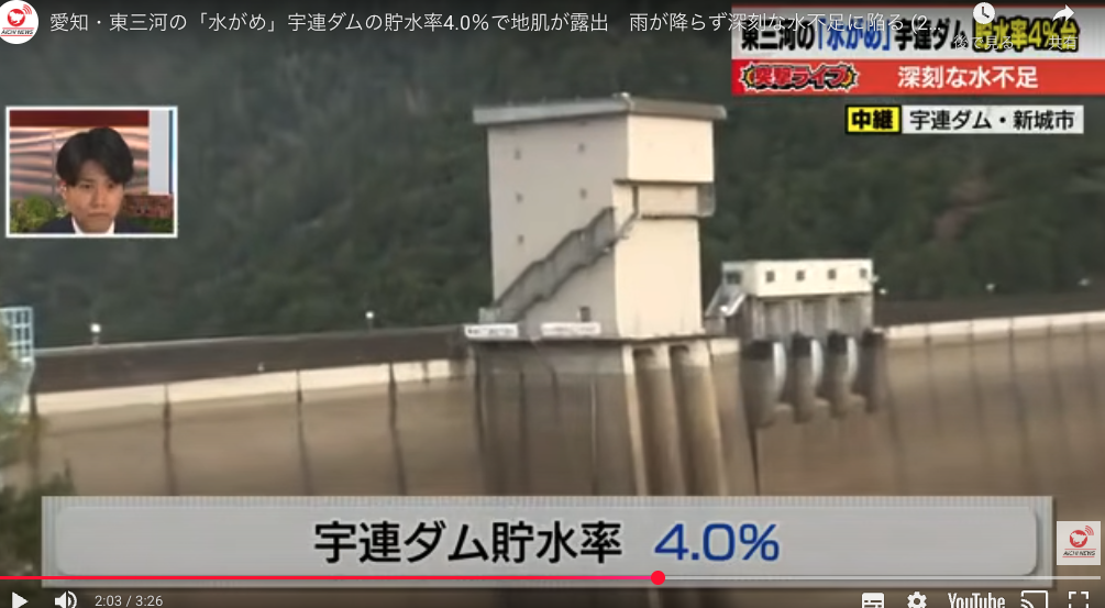特に今年の冬は、南岸低気圧によるまとまった雨や雪が宇連ダムの集水域(雨を集める範囲)にうまく降らなかったことが、じわじわと響いているそうです。